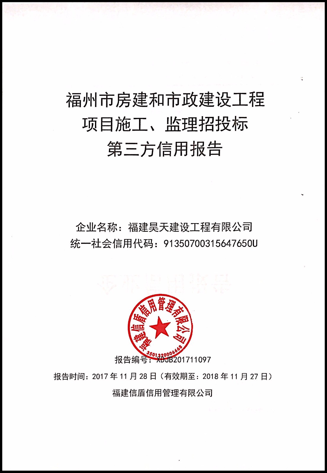 福建昊天建設(shè)工程有限公司 XDJB201711097